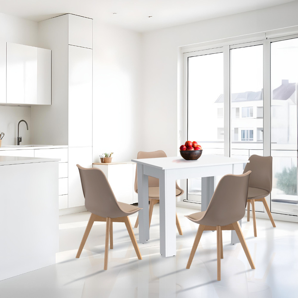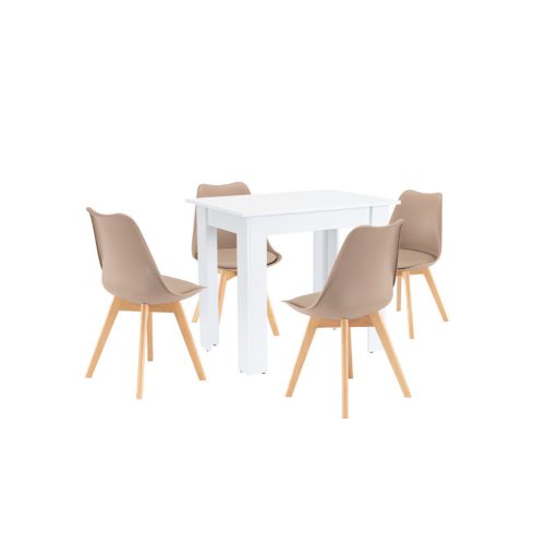 A Leziter márka Amina 4+1 étkezőgarnitúrája tökéletes választás modern lakásokba, éttermekbe és stílusos irodai konyhákba egyaránt. A garnitúra 4 db székből és 1 db asztalból, a népszerű Silla étkezőszék és a Yorki standard étkezőasztal harmonikus kombinációjából áll, egyesítve a funkcionalitást az időtlen dizájnnal. Az étkezőszett ideális 4 fő leültetésére és méretei miatt praktikusan elhelyezhető kisebb helyiségekbe is.