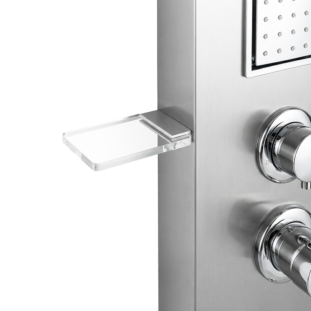 Az ANGEL hidromasszázs zuhanypanel egy lenyűgöző és praktikus megoldás a fürdőszobába, amely eleganciával és kényelemmel tölti meg a zuhanyzás élményét. Ez a zuhanypanel minden szempontból kiváló minőséget és fejlett funkciókat kínál, hogy a fürdőzés valódi élvezetté váljon. A zuhanypanel méretei 155 x 22 x 7 cm, ami lehetővé teszi a könnyű telepítést és a kényelmes használatot. Az ergonomikus dizájn és a méretarányos kialakítás gondoskodik arról, hogy ez a zuhanypanel harmonikusan illeszkedjen a fürdőszobai környezetbe, és helytakarékos megoldást nyújtson.
