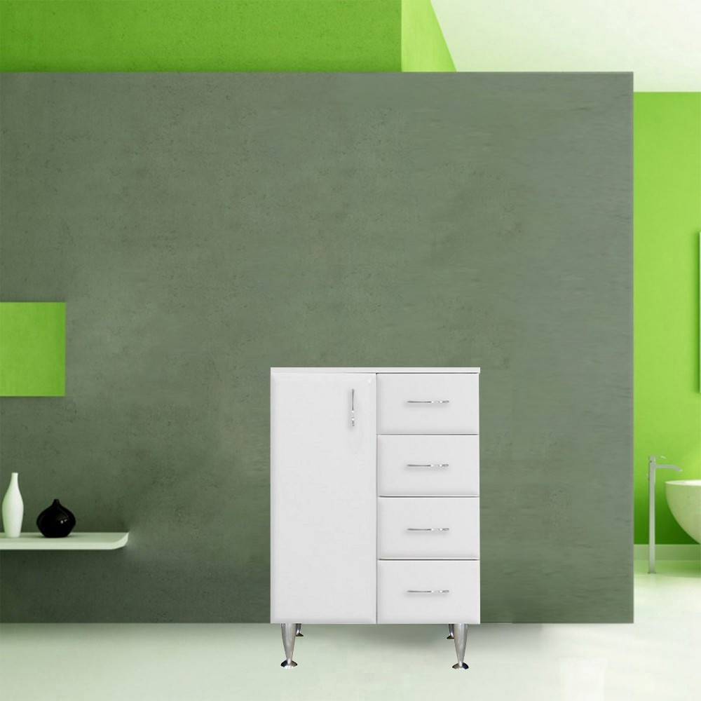 Bianca Plus 60 alacsony szekrény 1 ajtóval, 4 fiókkal,magasfényű fehér színben, balos