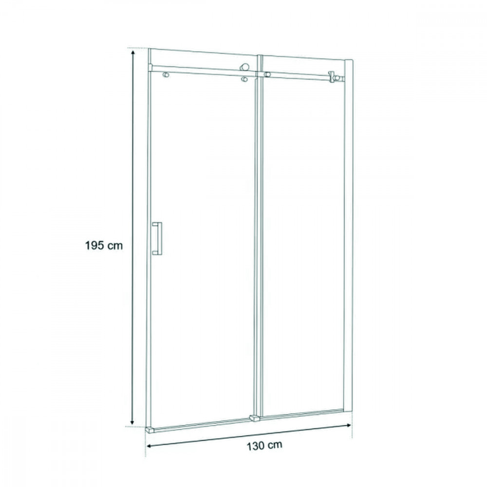 A zuhanyajtó krómozott alumínium fali profillal és 8 mm-es víztiszta edzett biztonsági üveggel van ellátva. A modell 130 cm-es szélességgel és 195 cm-es magassággal rendelkezik.