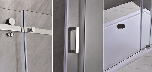 Állítható profliok Ha nem teljesen függőleges a fal, akkor akár 10 mm eltérést is korrigálhat. | Üveg vastagsága 8 mm Edzett biztonsági üveg az ön védelme érdekében, erős, stabil konstrukció. |