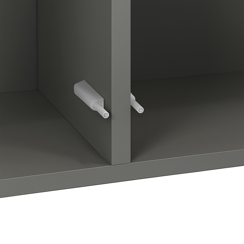 A antracit 2 ajtós Boxie fali szekrény ideális választás tudatos lakberendezőknek, kisebb lakások tulajdonosainak és mindazoknak, akik értékelik a variálható, dekoratív tárolókat.