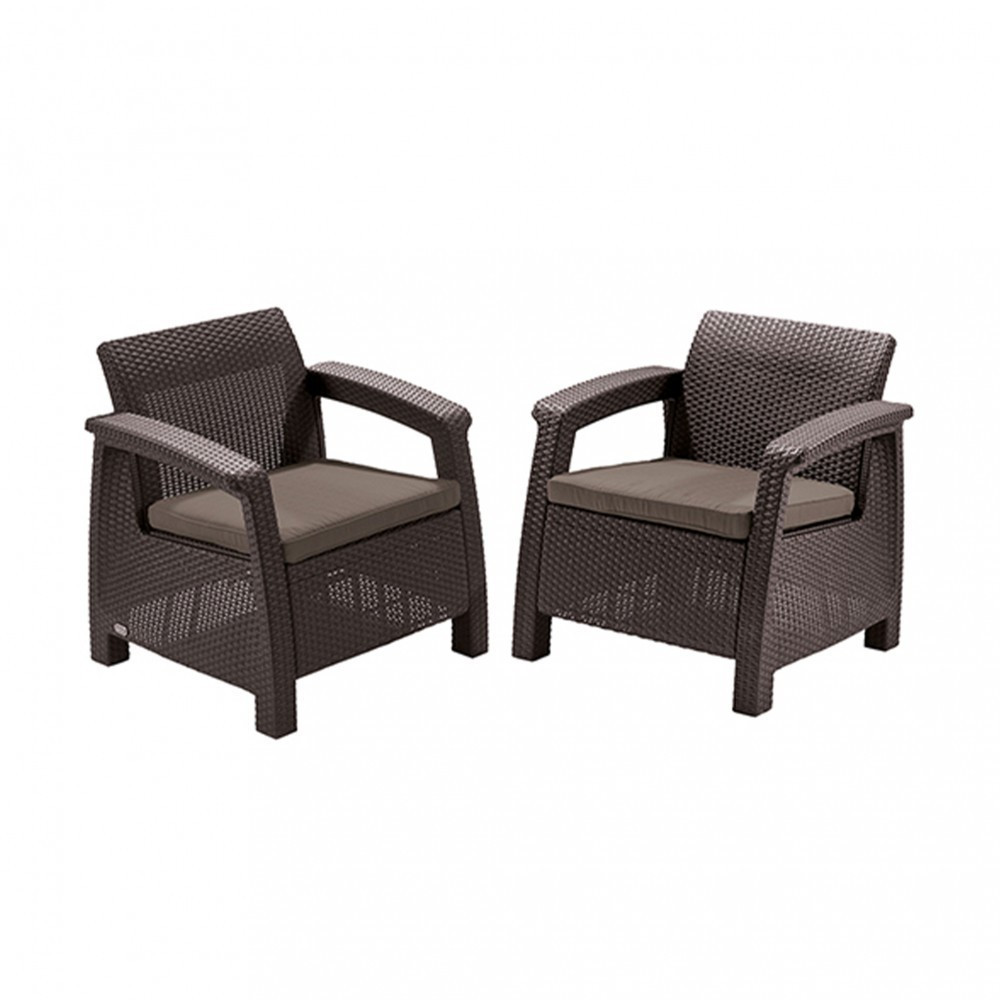 A bútorok legfontosabb előnye a kényelme. A Corfu Love Duo kerti bútor szett kanapéja és fotelei profilos háttámlákkal, széles kartámaszokkal és lapos üléspárnákkal rendelkeznek - amelyeknek köszönhetően élvezhetjük annak kényelmét, függetlenül attól, hogy kávét iszunk, újságot olvasunk vagy napozunk. A párnák ideálisan illeszkednek az ülések méretéhez és 6 cm vastagok.A bútorok ülőhelyenként képesek 300 kg - 100 kg súlyt megtartani . Kivételes tulajdonságuk a polipropilén - egy rendkívül tartós műanyag . Az anyag ismert a magas hőmérséklet, víz- és UV-sugárzás káros hatásainak ellenállásáról . Ez lehetővé teszi a bútorok intenzív színének és szép alakjának fenntartását, még akkor is, ha egész évben a szabadban áll. Az anyag tartósságának köszönhetően több éven át megcsodálhatjuk a szépségüket. Az üléspárnákat megfelelően impregnálták, hogy nagyobb vízállóságot biztosítsanak. Noha az erős eső nedvesíti őket, mint bármely más párnát, a kis szitálás vagy a kiömlött ital semmilyen módon nem fogja tönkretenni.