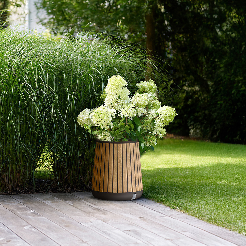 A Keter DecoCoat™ anyaga új generációs, UV-álló műanyag, amely természetes fafelületet imitál, miközben teljesen időjárásálló. Az integrált vízelvezető és víztartályos öntözőrendszer fenntartja az ideális talajnedvességet – így biztosítva egészségesebb növekedést a gyökérzónában.