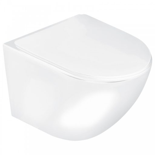 DELOS fényes fehér falra szerelhető WC soft-close ülőkével