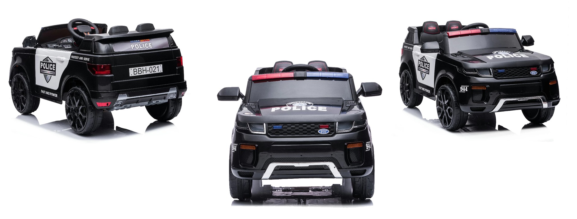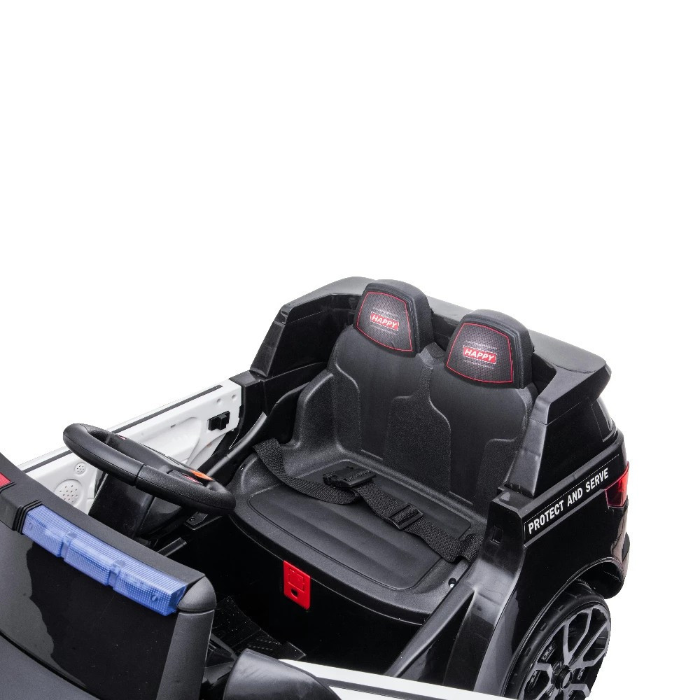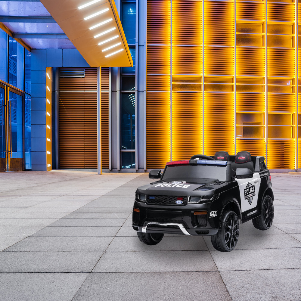 Az erős, 12V-os újratölthető akkumulátor, a szülők számára készült rádióvezérlés és a töltő tartozékok a termékhez. A rendőrautó fényszórókkal, MP3 csatlakozóval, visszapillantó tükrökkel és hanghatásos kormánykerékkel rendelkezik.
