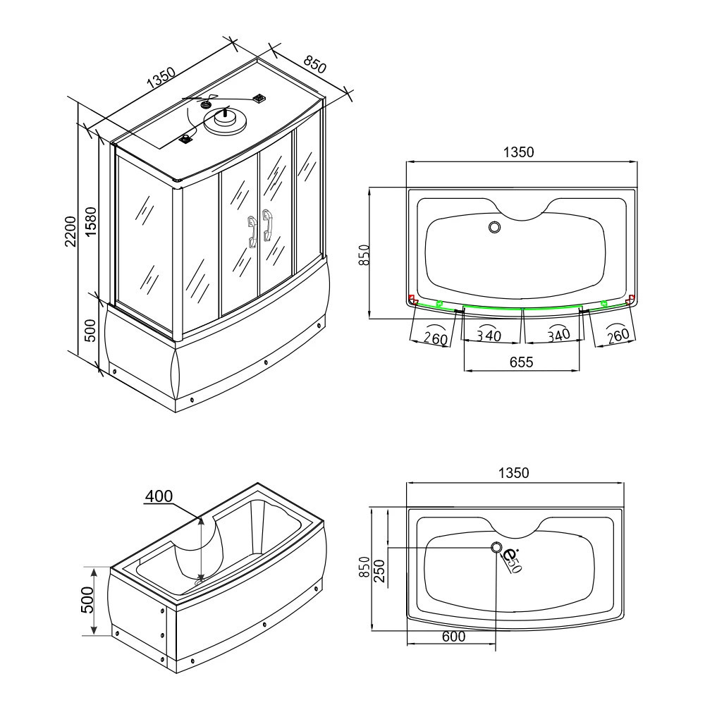 | Középső panel | PVC festett ezüst | Zuhanytálca anyag | ABS |