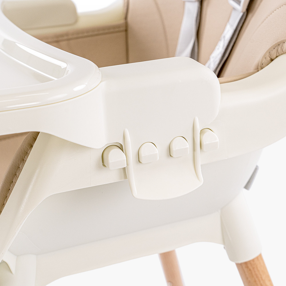 Az 5 pontos biztonsági öv stabilan a helyén tartja a gyermeket étkezés közben. A lekerekített formák és a gondosan kialakított ülőrész segítenek abban, hogy a használat kényelmes és biztonságos legyen, még aktívabb mozgás esetén is.