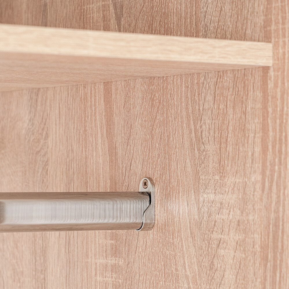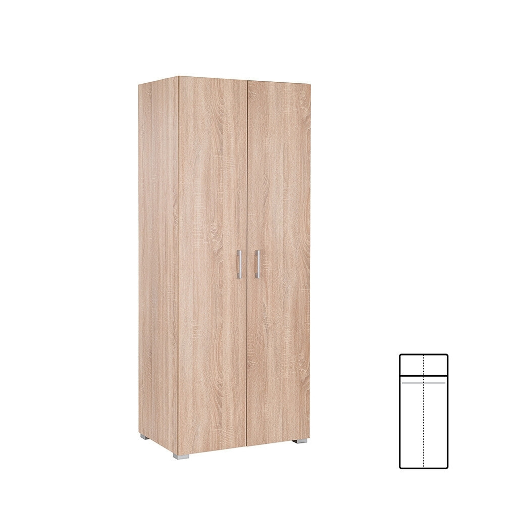 A Family ruhásszekrény ideális választás mindazok számára, akik kis helyen is hatékony tárolási megoldást keresnek. A 74 cm széles és 182 cm magas szekrény kompakt kialakításával és natúr sonoma tölgy színével harmonikusan illeszkedik bármely hálószobába, vendégszobába vagy előszobába. A kétajtós kivitel mögött egy praktikus akasztórúd és egy felső polc segíti a rendszerezett tárolást – legyen szó ruhákról, kabátokról, dobozokról vagy egyéb kiegészítőkről.