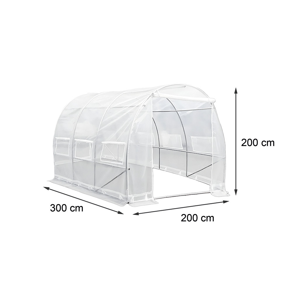 A fóliasátor 200x200x300 cm-es méretének köszönhetően bőséges helyet biztosít a növényeid számára. A termék váz nélkül érkezik, így a fóliát könnyedén rögzítheted bármilyen kompatibilis szerkezetre vagy meglévő vázra. A modern fólia alagút felhúzható ajtóval rendelkezik, ami jelentősen növeli a használat kényelmét. Emellett 6 hálós ablak biztosítja a megfelelő levegő keringést, miközben hatékonyan véd a nem kívánt rovarok ellen. A fóliasátor könnyen telepíthető és karbantartható.