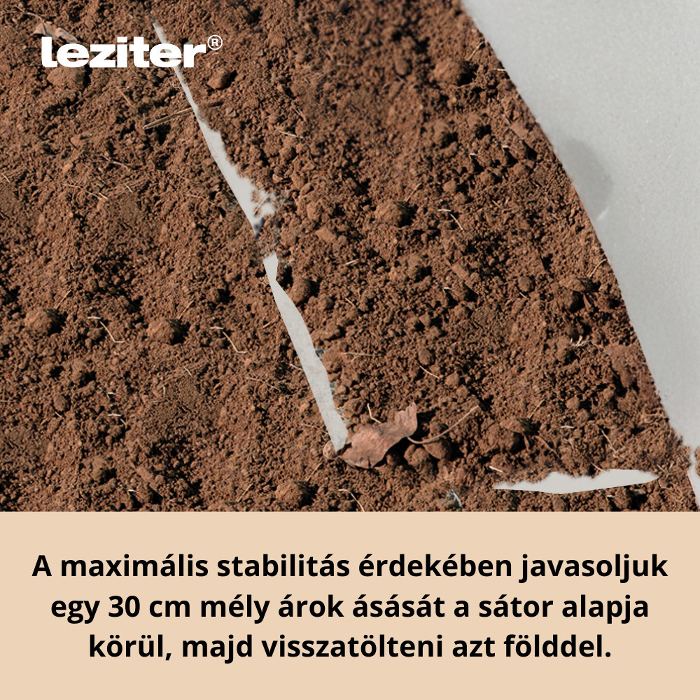 - Rögzítés: körbefutó lehajtós fóliaperem, földdel leterhelhető