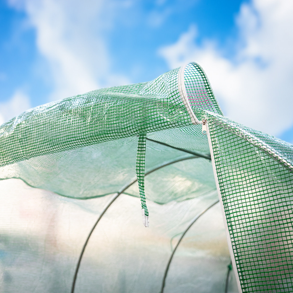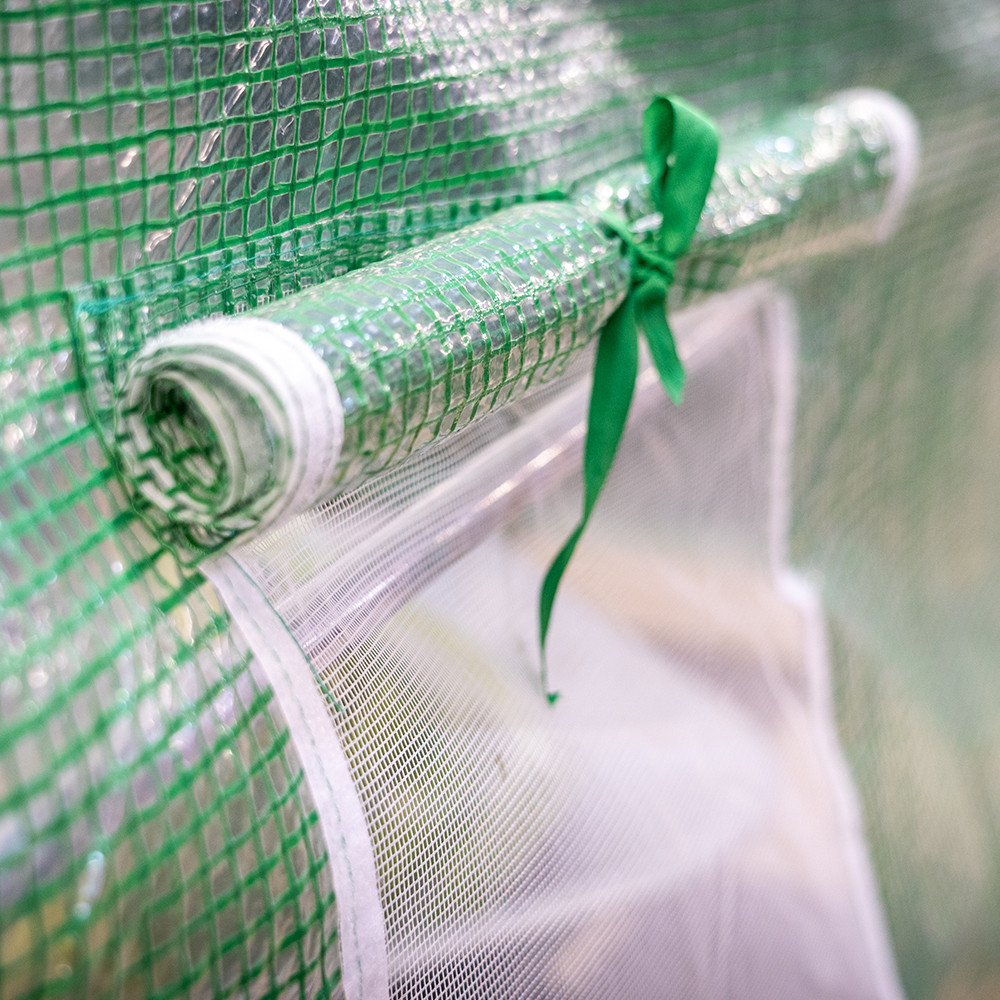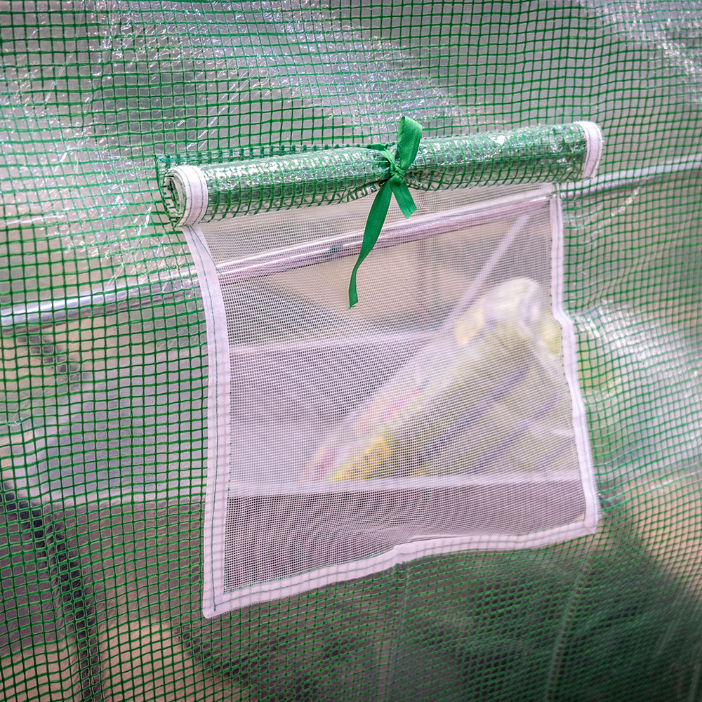 A modern fóliasátor praktikus, felhajtható ajtóval van ellátva, ami egyszerűvé teszi a belépést. A sátor 12 oldalsó szellőzőnyílása hálóval van ellátva, hogy megakadályozza a rovarok bejutását, miközben biztosítja a megfelelő légáramlást. Az ablakok segítik a nedvesség szabályozását, így növelve a terméshozamot.