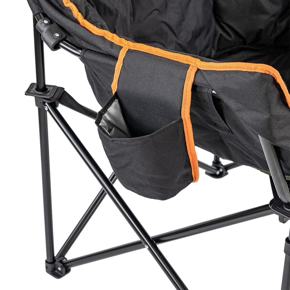A kagylóformájú Leziter horgász fotel extra vastag párnázása és 600D Oxford huzata révén puhán öleli körbe a hátat és a vállakat, így akár egész nap élvezheted a pecázást, kempingezést vagy tábortüzet fáradtság nélkül. Az acélcső váz oldalanként 62 cm-es, széles támaszt ad, a 45 cm-es ülésmagasság pedig ideális a bot gyors felkapásához, miközben kíméli a térdet.