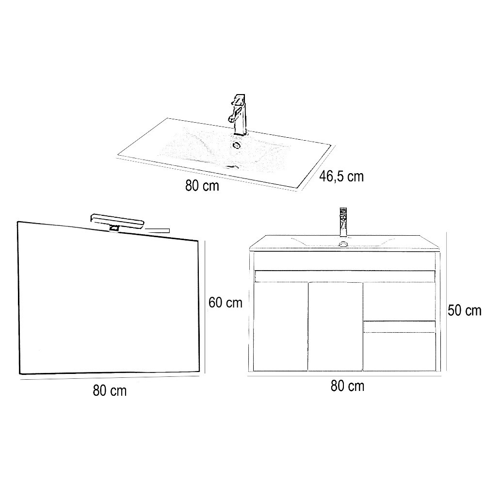 A fürdőszoba bútor tágas kialakítással rendelkezik ahol kényelmesen elférnek a fürdőszobai pipere eszközök. Kompakt kialakítása miatt kisebb fürdőszobák berendezésére is alkalmas, például panel lakásokban. A termék magas minőségű bútorlapból készül és színben passzoló élzárókkal van ellátva. A fürdőszoba bútor felfüggesztett kivitelben kapható.