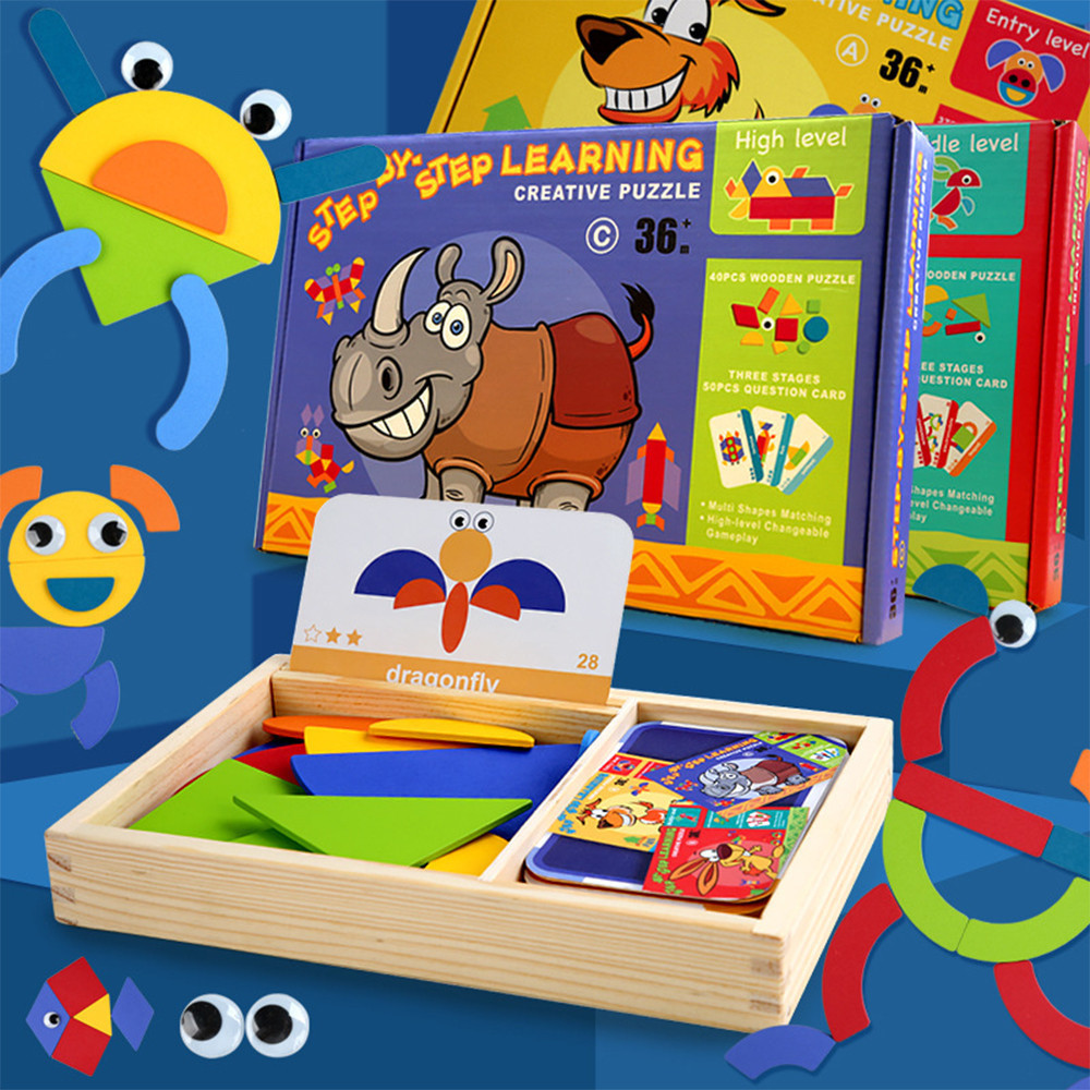 Termékverzió: Mágneses tangram fajáték angol kártyákkal, haladó szint
