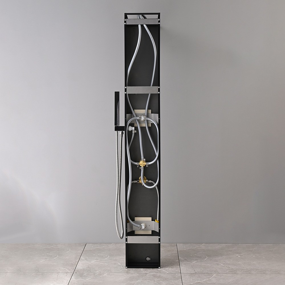 A Malaga Black hidromasszázs zuhanypanel egy lenyűgöző és modern megoldás a fürdőszobákban, amely luxus-élményt nyújt zuhanyzás közben. Ezt a zuhanypanelt kifejezetten a kényelemre és relaxációra tervezték, miközben funkciókban gazdag és stílusos kialakításával a fürdőszobai enteriőr részévé válik. A zuhanypanel mérete 145 x 20 X 7 cm. Az anyaga festett alumínium ötvözet, ami erős és tartós, miközben könnyű súlyú és hosszú távon is megőrzi esztétikus megjelenését. Ez a modern anyagválasztás garantálja a zuhanypanel hosszú élettartamát.