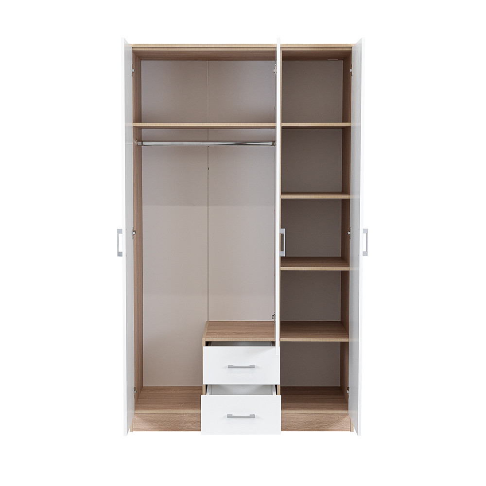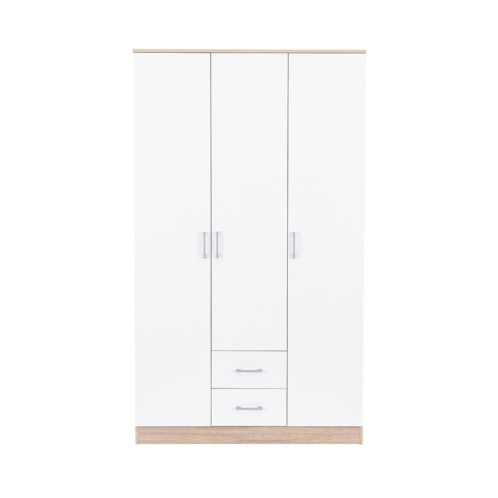 Az elegáns fehér front és a fahatású sonoma tölgy korpusz ötvözete tökéletes harmóniát teremt a nappaliba vagy a hálószobába egyaránt. A 205 cm magas, 120 cm széles és 55 cm mély gardróbszekrény ideális választás mindenki számára, aki szeretné rendszerezni ruháit és kiegészítőit.