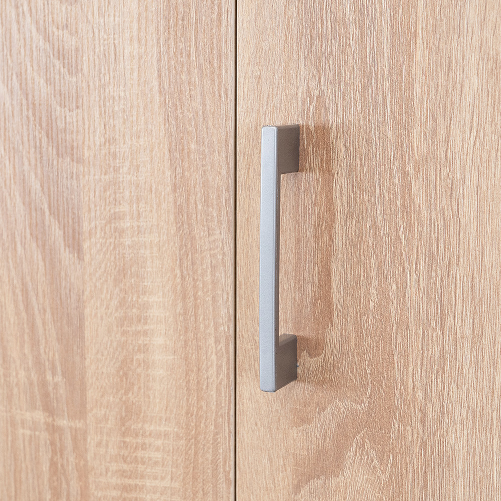 A matt króm hatású műanyag fogantyúk modern megjelenést kölcsönöznek, míg a két szárnyú nyílóajtó és a polcrendszerekhez kialakított ajtók révén az egész szekrény belseje könnyen áttekinthető, így minden ruhadarab és tárgy könnyedén elérhető. A 11 polc és a két görgős fiók bőséges tárolóhelyet biztosít legyen szó ágyneműről, szezonon kívüli ruházatról vagy fehérneműkről.