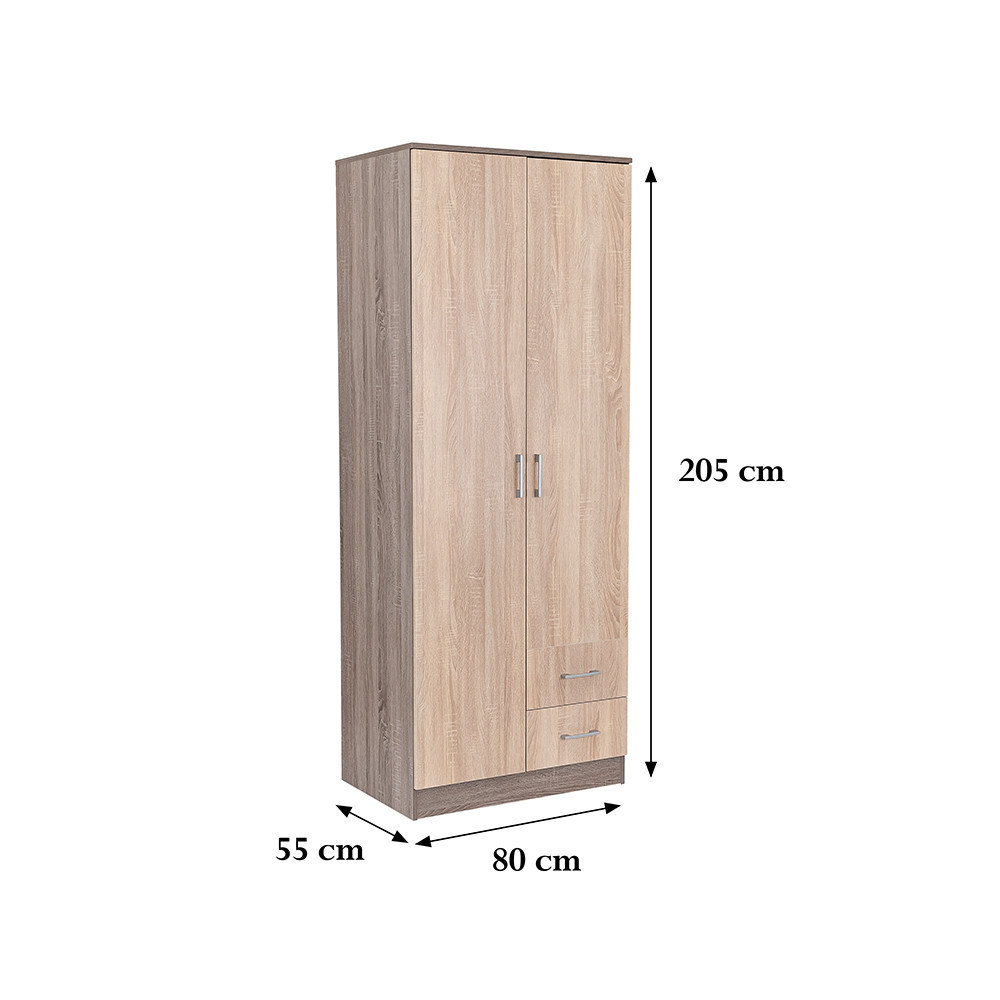 Az elegáns sonoma tölgy front és a fahatású yorki tölgy korpusz ötvözete tökéletes harmóniát teremt a nappaliba vagy a hálószobába egyaránt. A 205 cm magas, 80 cm széles és 55 cm mély gardróbszekrény ideális választás mindenki számára, aki szeretné rendszerezni ruháit és kiegészítőit.