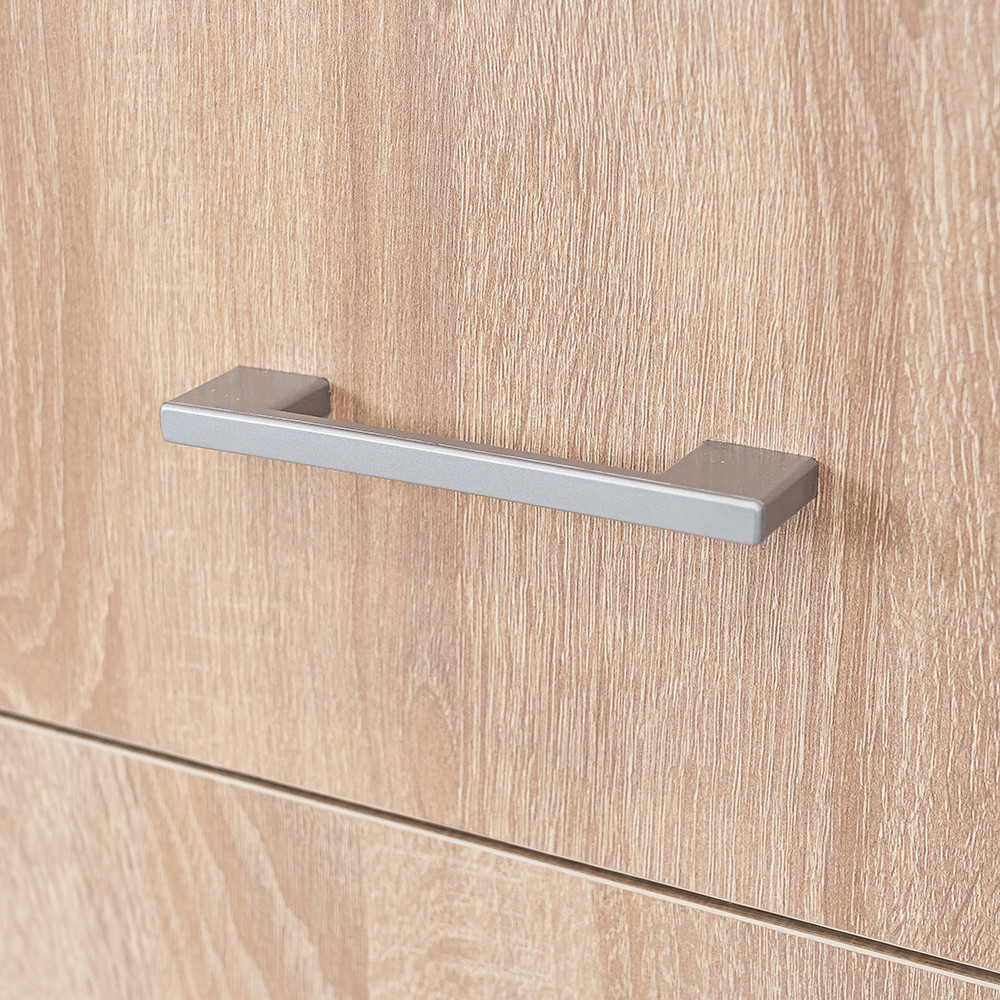 A matt króm hatású műanyag fogantyúk modern megjelenést kölcsönöznek, míg a két szárnyú nyílóajtó révén az egész szekrény belseje könnyen áttekinthető, így minden ruhadarab és tárgy könnyedén elérhető. Az öt polc és a két görgős fiók bőséges tárolóhelyet biztosít legyen szó ágyneműről, szezonon kívüli ruházatról vagy fehérneműkről.