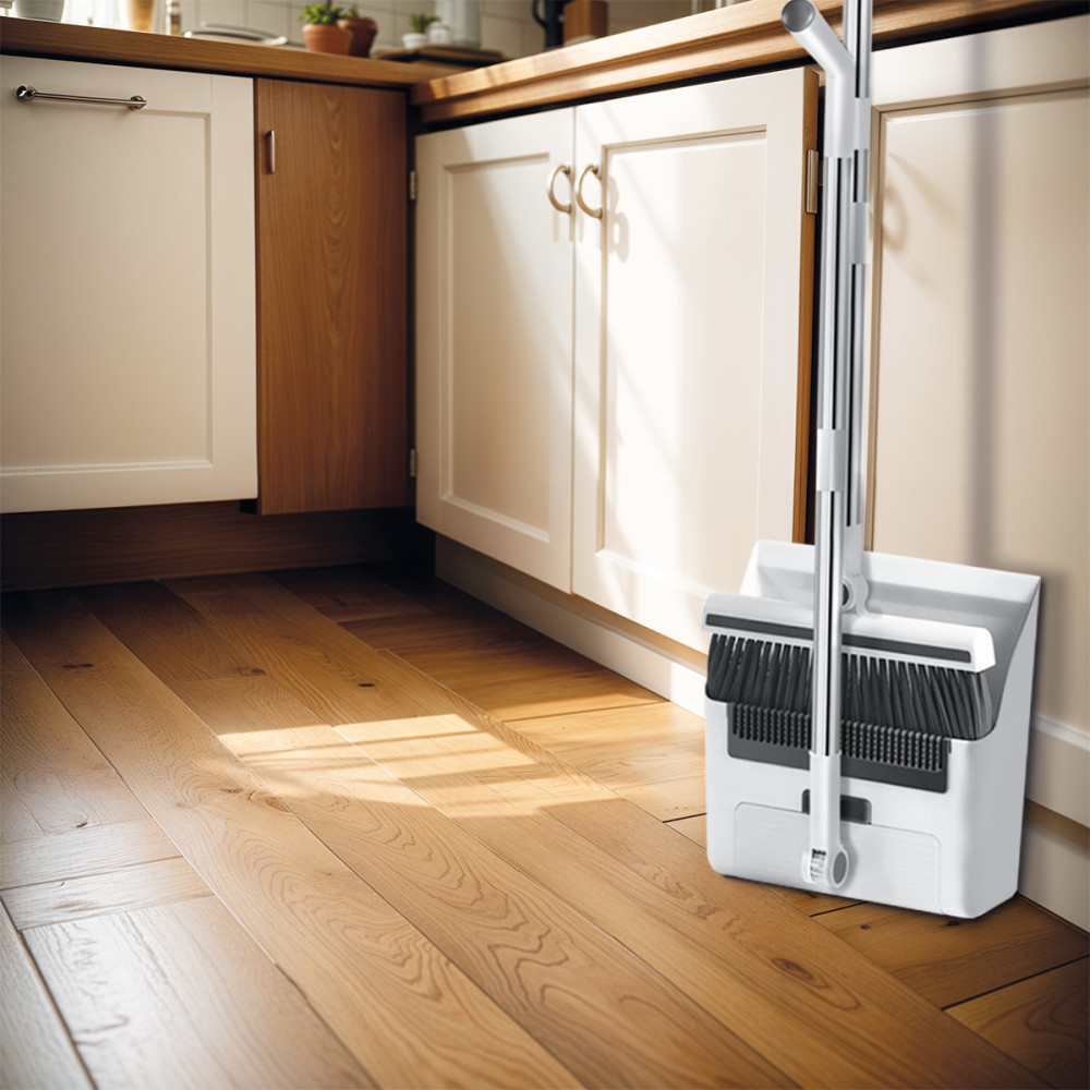 Vastag seprű: Az erős és tartós anyagból készült vastag seprű segítségével könnyedén szedhetjük össze a száraz és apró szennyeződéseket. A hosszú nyél kényelmes takarítást tesz lehetővé anélkül, hogy le kellejen hajolnunk.