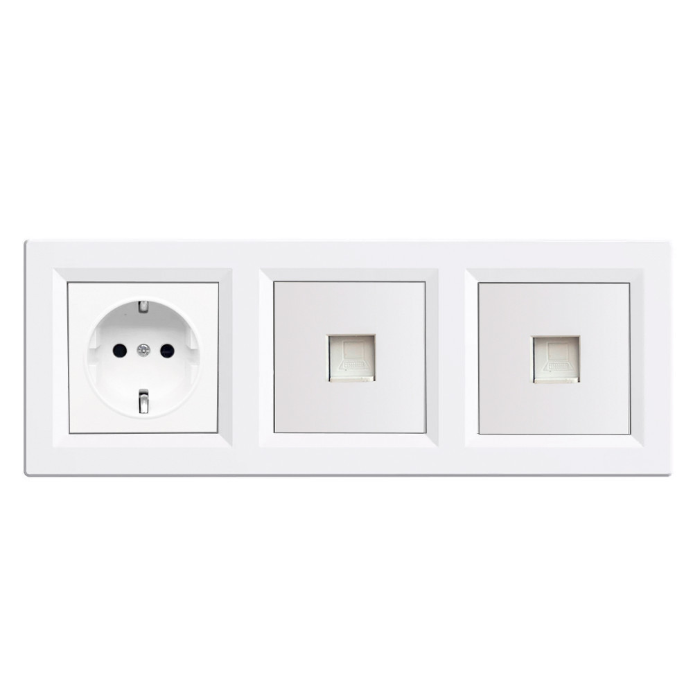 - Csatlakozók: 1 × földelt dugalj (2P+F, F típus / Schuko), 2 × RJ-45 (8P8C) aljzat, Cat5e kompatibilis