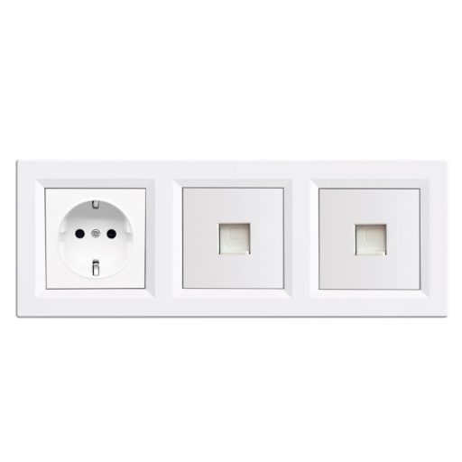 Nova III földelt csatlakozóaljzat dugalj kettő UTP csatlakozóval fehér kerettel