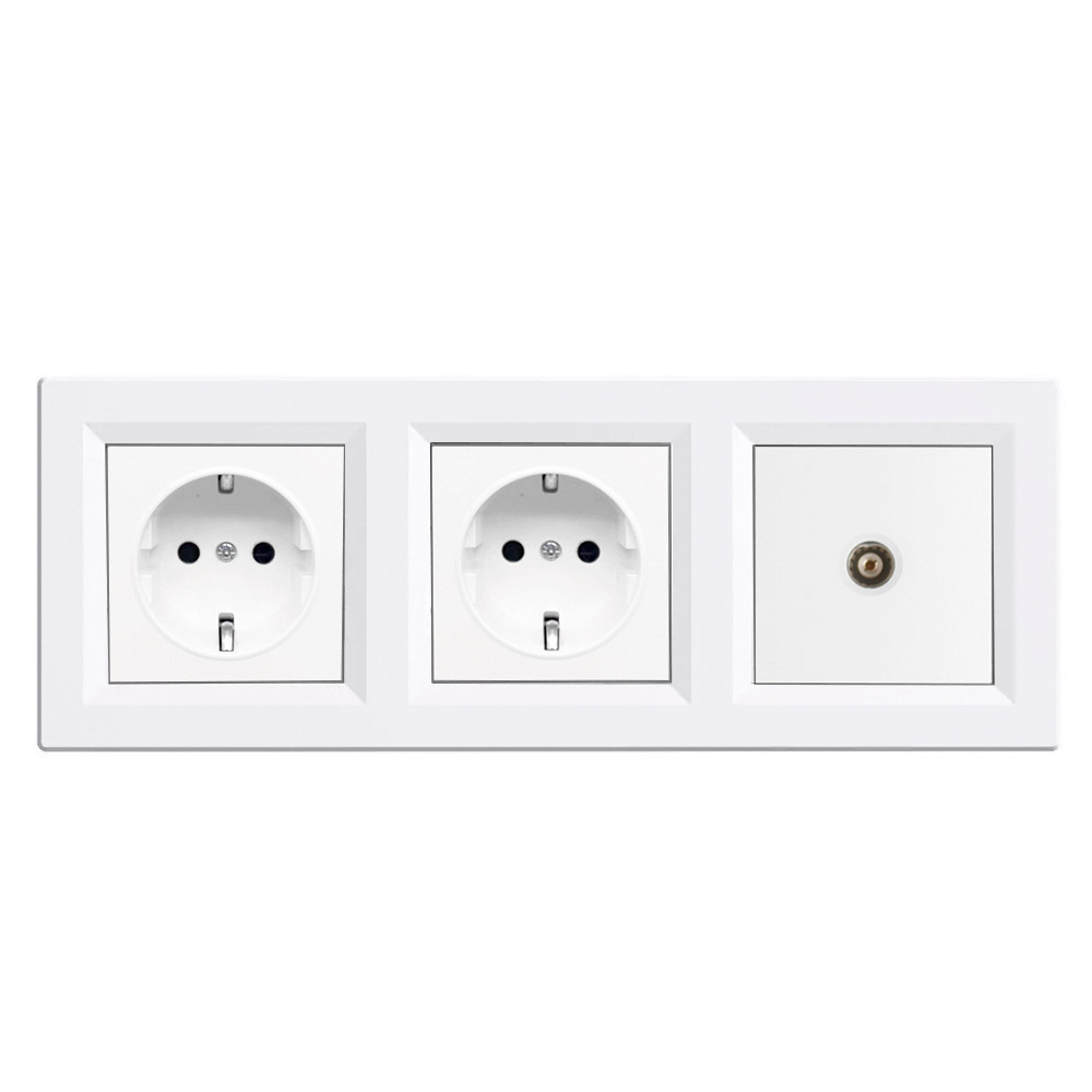 - Típus: Kettős földelt csatlakozóaljzat (dugalj) 2P+F, F típus + 1 × TV RF csatlakozó