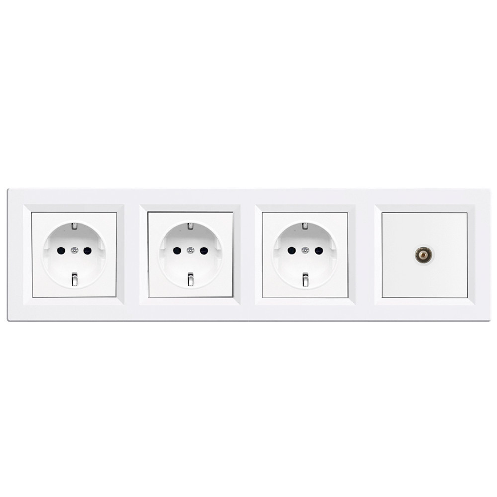 - Típus: Hármas földelt csatlakozóaljzat (2P+F, F típus) + 1 × TV RF aljzat