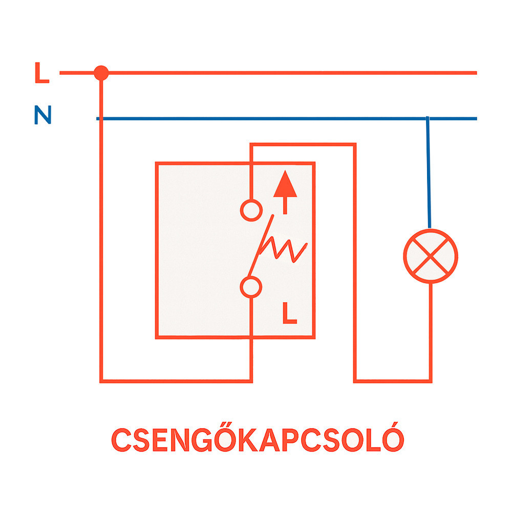 • Típus: Csengőkapcsoló (rugós visszanyitású, impulzuskapcsoló)