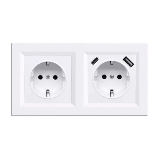 A Nova földelt csatlakozóaljzat USB csatlakozóval fehér kerettel ideális választás olyan helyiségekbe, ahol egyszerre szükséges hagyományos 230 V-os elektromos csatlakozás és gyors, adapter nélküli USB töltés. Az USB-A és USB-C portok segítségével közvetlenül csatlakoztatható mobiltelefon, fülhallgató, okosóra és más kisebb fogyasztású eszköz – külön hálózati adapter nélkül.
