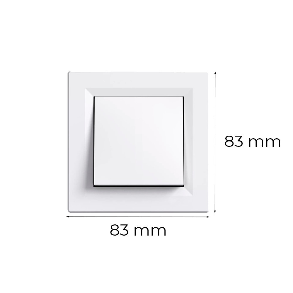 Ez a változat gyárilag tartalmazza a Nova egyes keretet, így nem kell külön kiegészítőt vásárolni hozzá. A lekerekített élforma és a 83 × 83 mm-es méret letisztult, modern megjelenést biztosít, amely tökéletesen illeszkedik a legtöbb beltéri enteriőrbe – legyen szó nappaliról, konyháról vagy közlekedőről.
