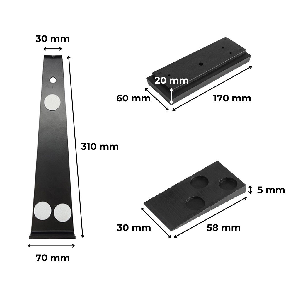 - 20 db ék (58×30×5 mm és 60×30×5 mm, bordázott felületű, csúszásgátlós)