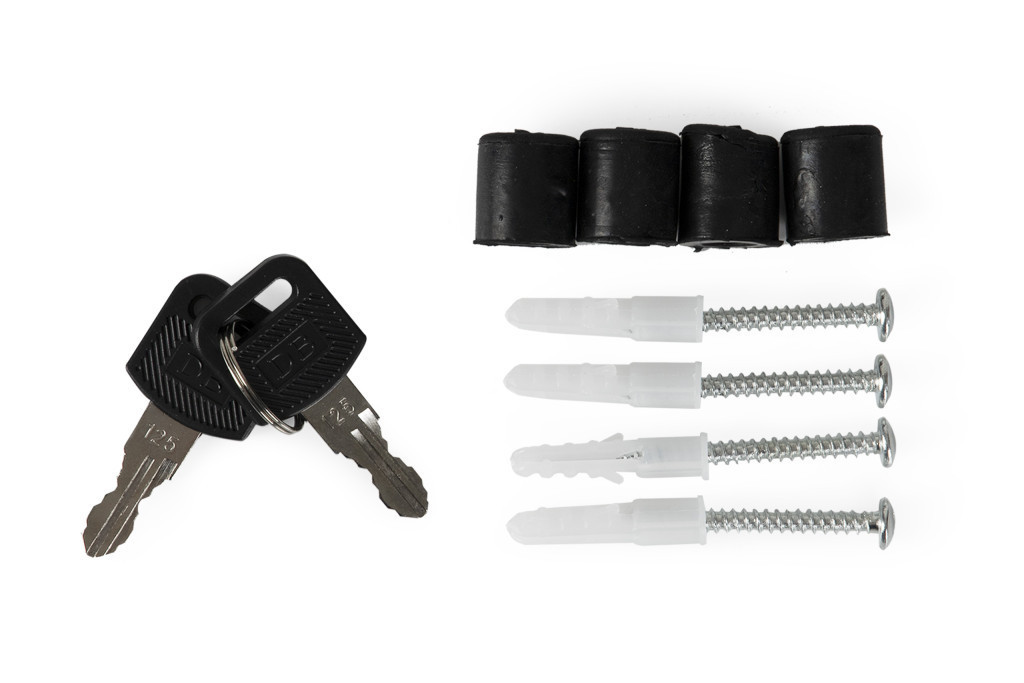 Together with the box, you will receive an assembly kit - 4 pins and spacers, so you can start assembling the box immediately after unpacking. The set includes two keys to open the box.