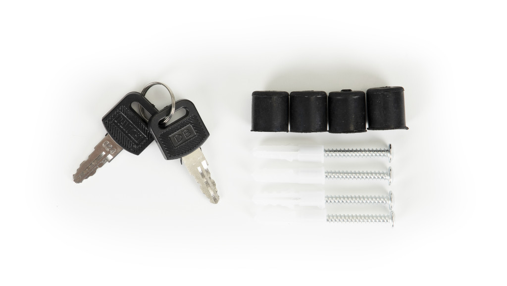 Together with the box, you will receive an assembly kit - 4 pins and spacers, so you can start assembling the box immediately after unpacking. The set includes two keys to open the box.