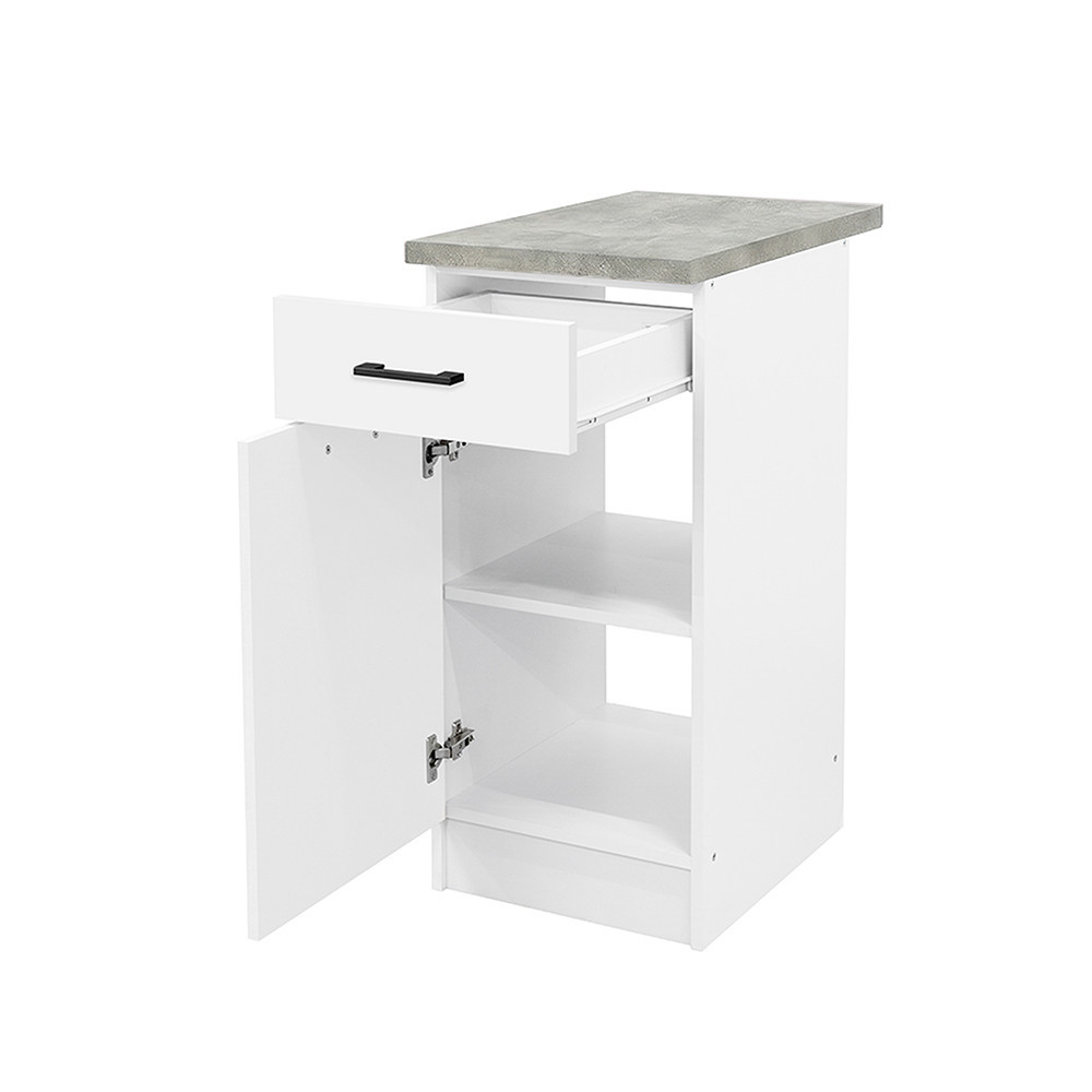 Praktik 40 alsó szekrény 1 ajtós 1 fiókos – fehér korpusz, fehér front