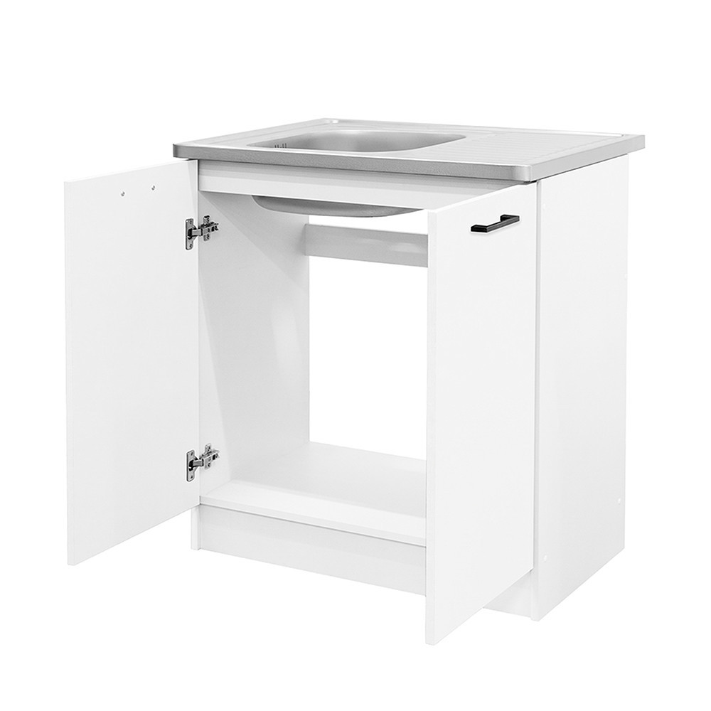 Praktik 80 alsó szekrény 2 ajtós mosogatós – fehér korpusz, fehér front