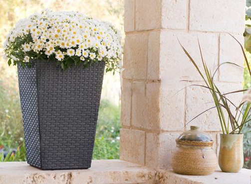 A négyszögletes MEDIUM RATTAN PLANTER virágtartó természetes rattan fonásra emlékeztető mintázata remekül kiemeli a növények szépségét a teraszon, erkélyen, vagy a helyiségekben. A klasszikus színskála és az univerzális kialakítás remekül aláhúzza az adott helyet, a stílustól függetlenül. A szolíd és stabil szerkezet hosszú évekre garantálja a tartósságot. A virágtartónak nem tartozéka a műanyag cserép!