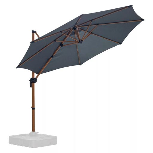 Az időtlen antracit szín tökéletesen illik a kertbe. A ponyva anyaga tömör és kiváló minőségű poliészter 180 g/m2. A napernyőt egy egyszerű mozdulattal össze- és széthajthatod a forgattyús mechanizmus segítségével. Előnye a tető dőlésszögének állíthatósága, így könnyedén igazítható a nap állásához. A Roma D kertje szerves részévé válik a meleg nyári napokon, és egyedülálló kiegészítője és praktikus kiegészítője is lesz. Könnyen karbantartható és könnyen tárolható.