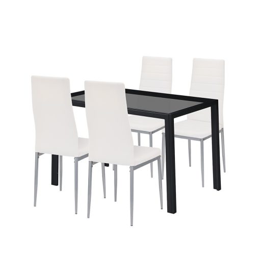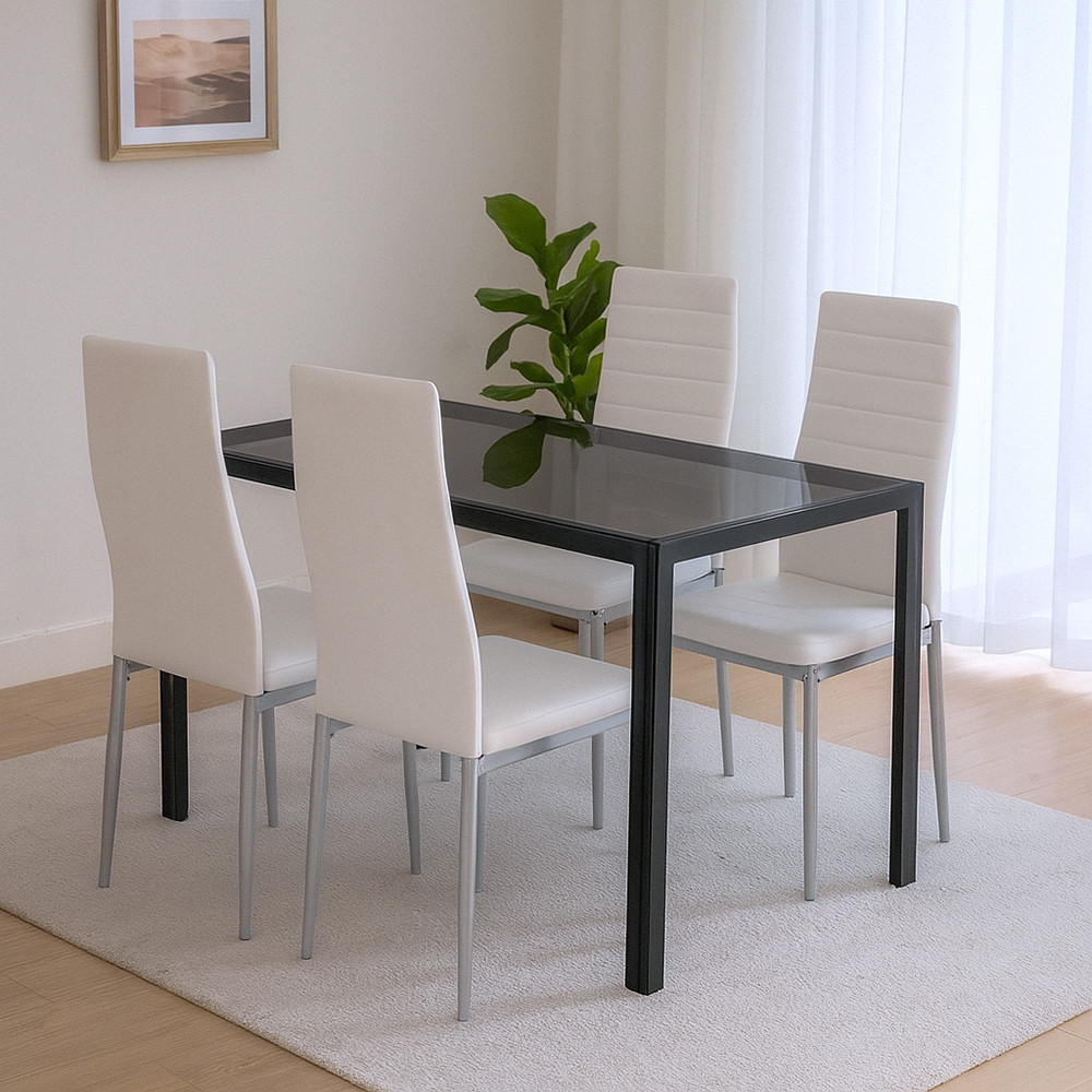 Rowan 4+1 étkezőgarnitúra – Modern fehér-szürke stílus edzett üvegasztallal és kényelmes székekkel