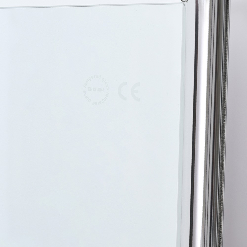 A zuhanyajtó Alumínium ötvözet polírozott profillal, 5 mm-es víztiszta edzett biztonsági üveggel és cink fogantyúval van ellátva. A modell 800 x 1950 mm méretű, és 785-805 mm között állíható.