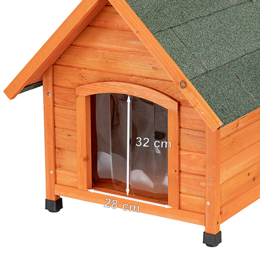- Kialakítás: sátortetős, klasszikus fa kutyaház