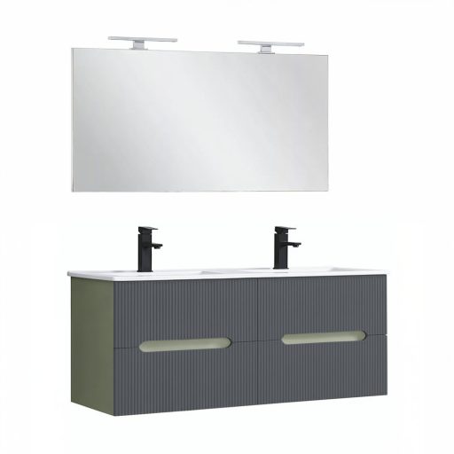 Leziter Trent Fürdőszobabútor 120 cm kerámia mosdóval (4 fiókos) tükörrel Olivazöld - Antracit szürke
