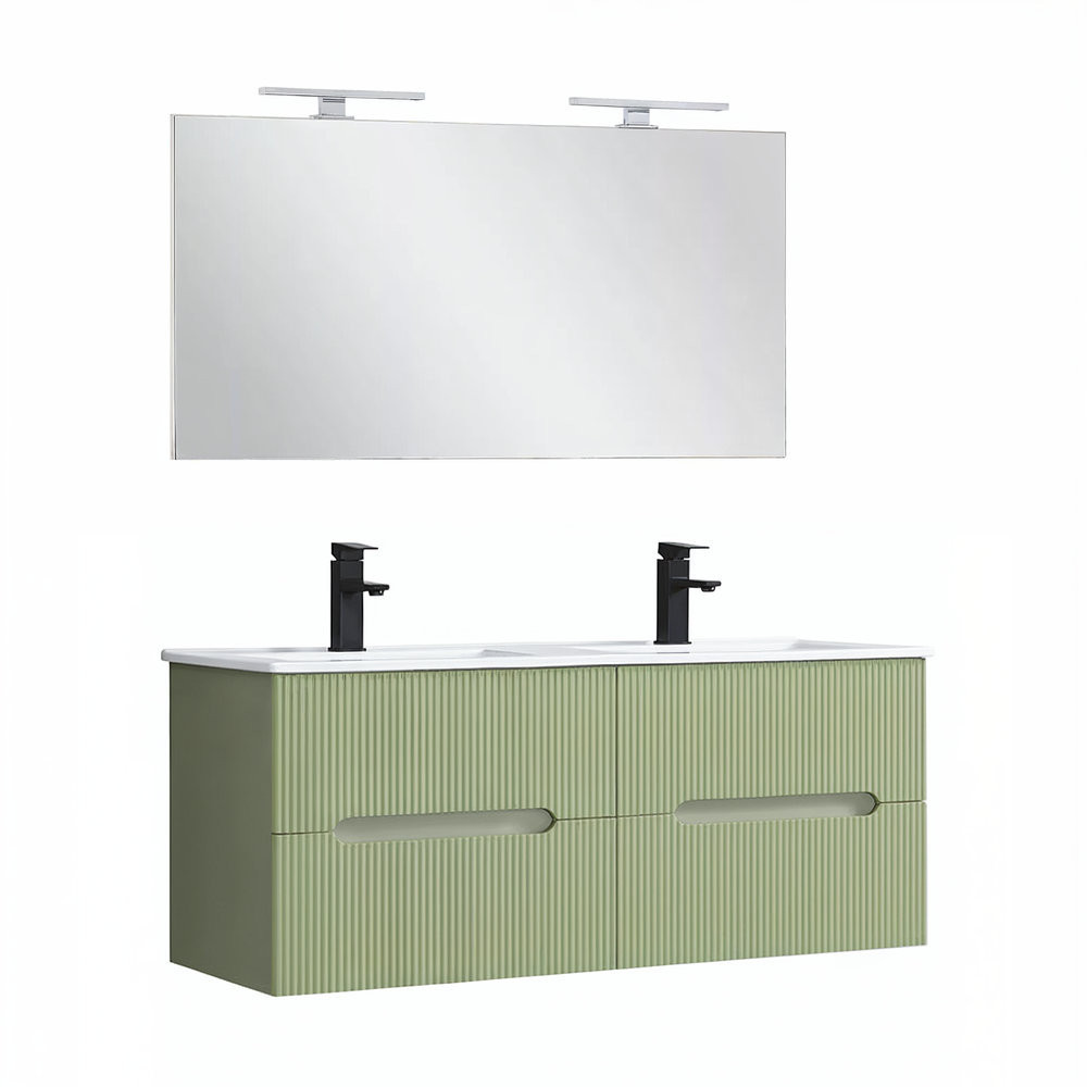 Leziter Trent Fürdőszobabútor 120 cm kerámia mosdóval (4 fiókos) tükörrel Olivazöld - Pisztáciazöld