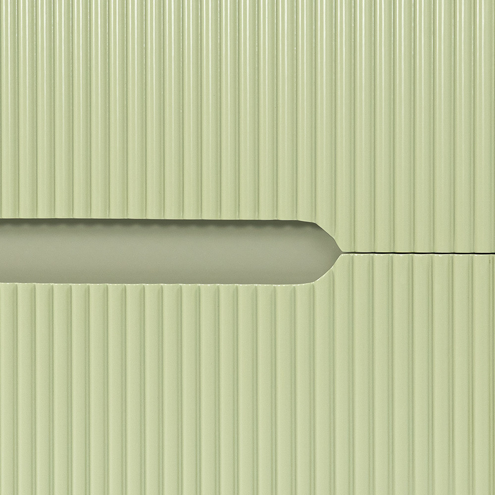 A fiók erős, teljes kihúzású sínrendszert kapott, soft-close záródással, a felső fiók U-alakú kivágása pedig a szifon elhelyezését teszi lehetővé anélkül, hogy jelentősen csökkentené a tárolókapacitást. A mosdó standard 35 mm-es csaptelepekkel kompatibilis. A bordázott front pedig lekerekített profillal készült, így egy mikroszálas kendővel könnyedén tisztán tartható.