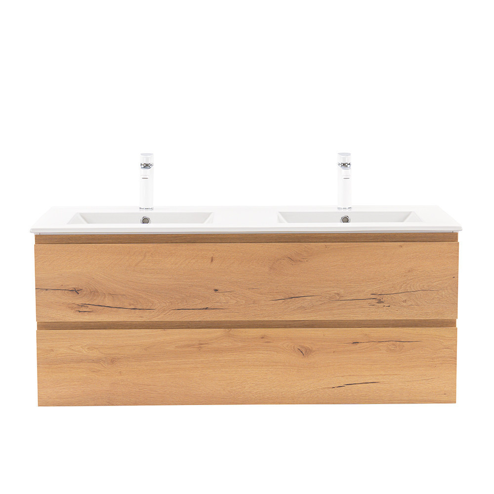 - Elegáns és praktikus mosdó: A bútor flat design kerámia mosdóval érkezik, amely két medencés kivitelű. Modern, esztétikus és könnyen tisztítható.
