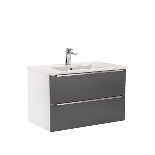 A Vario Trim 80 komplett fürdőszobabútor egy stílusos és praktikus választás modern fürdőszobához. Kompakt méretei ideálisak kisebb és közepes méretű fürdőszobákba is, és a fém fogantyú profil patinás hatást, az fehér-antracit színű dizájn elegáns megjelenést kölcsönöz a térnek. A csillapítós fiókzáródás és a felfüggesztett kivitel a kényelmet és könnyű tisztántartást szolgálja, míg a minőségi anyagok hosszú élettartamot biztosítanak.