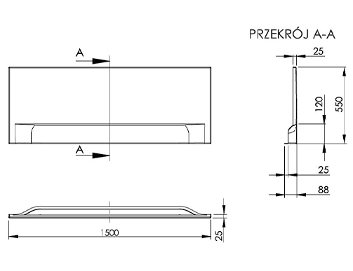 Az előlap a Wivea egyenes káddal kompatibilis.