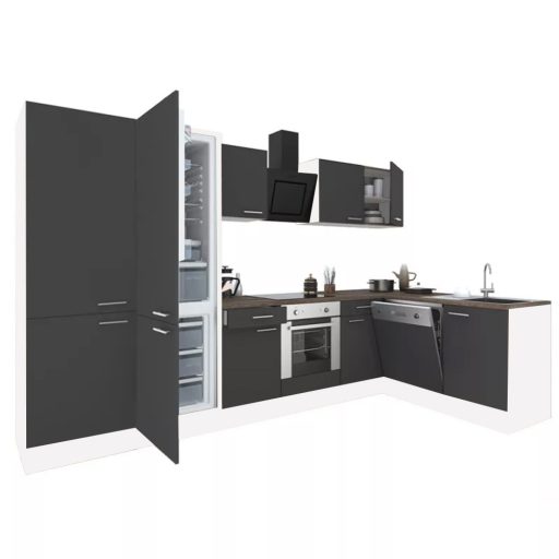 Yorki 340 sarok konyhablokk fehér korpusz, selyemfényű antracit fronttal. A tökéletes konyha megteremtője!