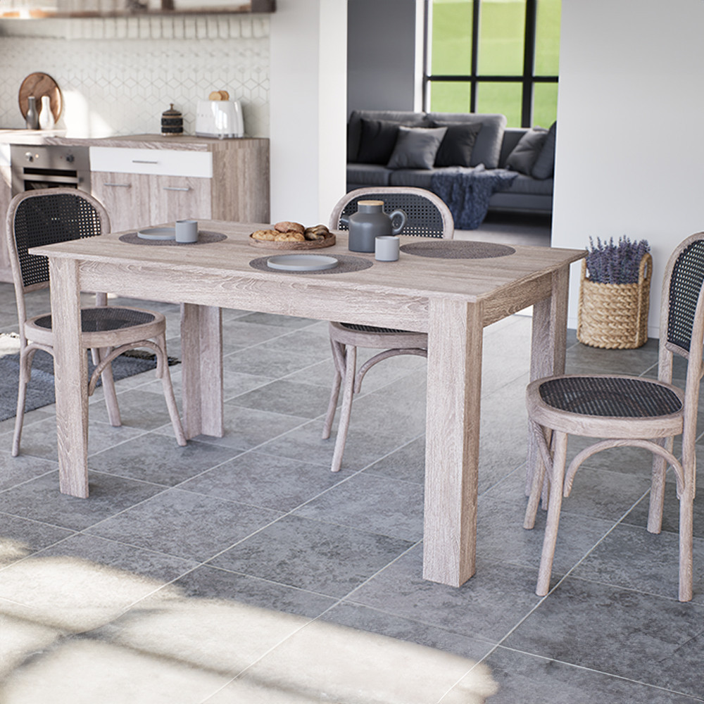 Az étkezőasztal méretei tökéletesen megfelelnek hat személyes étkezésekhez. Az 140 cm hosszúság és 80 cm szélesség, magassága 76 cm elegendő helyet biztosít.